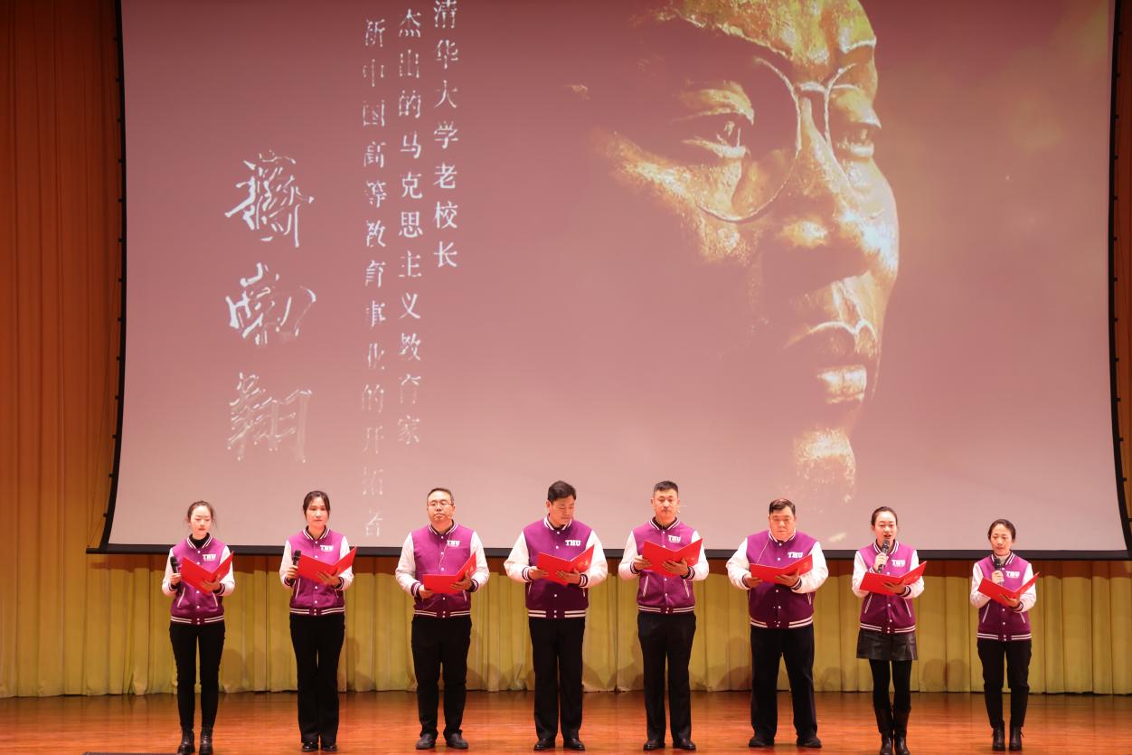 第三篇章,保卫部诗朗诵《新中国教育界一面高扬的旗帜——致敬老校长蒋南翔》,用真情向伟大的教育家致敬。离退休处、档案馆、校史馆的原创表演唱《百年清华永向前》,诉说了机关人在新的百年征程上推动学校各项事业高质量发展的信心。实验室处、法务办的《华业战线联盟》,活泼动感的旋律带动了舞台氛围。资产处的《明天会更好》将歌唱和表演融合,表达了战胜困难的信心和温暖人心的力量。