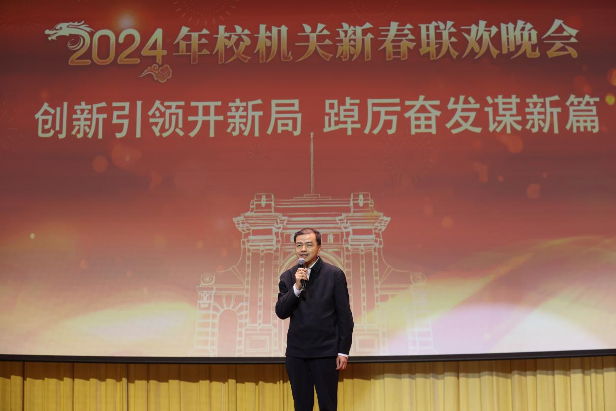 向波涛表示,在过去的一年中,清华大学全面学习贯彻党的二十大精神,深入开展学习贯彻习近平新时代中国特色社会主义思想主题教育,落实学校第十五次党代会各项重要部署,世界一流大学建设事业在人才培养、科学研究、社会服务和文化传承创新等方面都交出了出色的答卷。这些成绩的取得,凝聚着包括校机关在内的全校师生员工的辛勤付出和担当作为,他代表学校向校机关全体教职工表示衷心感谢,为大家送上新春祝福。向波涛表示,2024年是新中国成立75周年,也是学校推动高质量发展的关键一年,希望校机关全体教职工团结拼搏、再接再厉,进一步提升管理服务水平,为学校迈向世界一流大学前列提供更为有力的支撑保障。