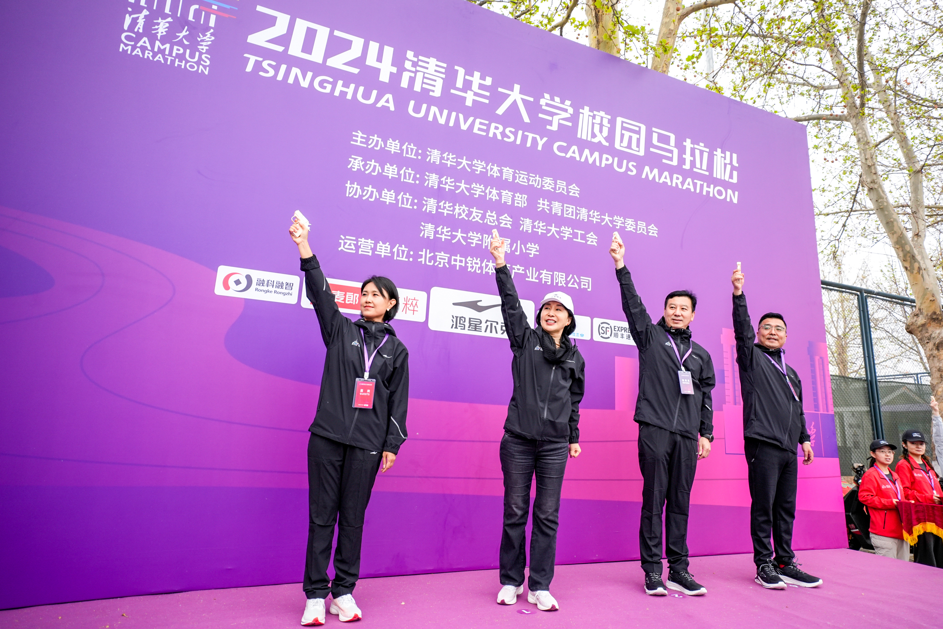 清华大学副校长杨斌为比赛鸣枪并参加赛事,清华大学附属小学校长窦桂梅、体育部党委书记马新东、北京中锐体育产业有限公司董事长刘晓磊、今麦郎饮品股份有限公司营销总监邢爱国为比赛鸣枪。