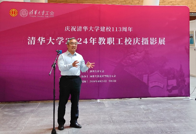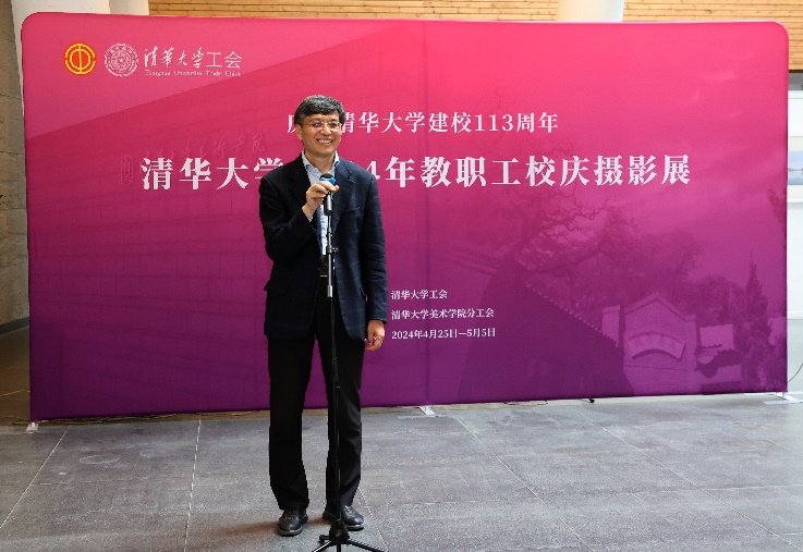 清华新闻网4月28日电 4月25日下午,为迎接清华大学113周年校庆,丰富教职工业余文化生活、促进校园文化建设,清华大学2024年教职工校庆摄影展在美术学院A区一层大厅开幕。校务委员会副主任王岩、美术学院党委书记覃川发表开幕致辞,校工会副主席王丹主持开幕式。