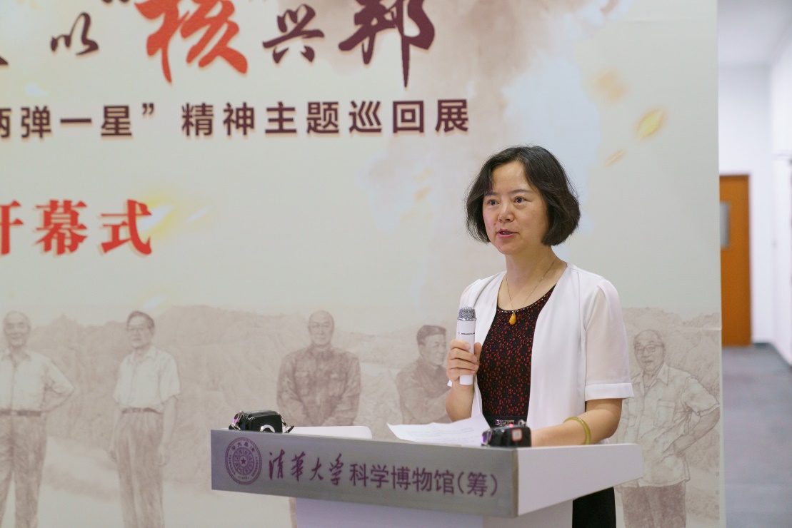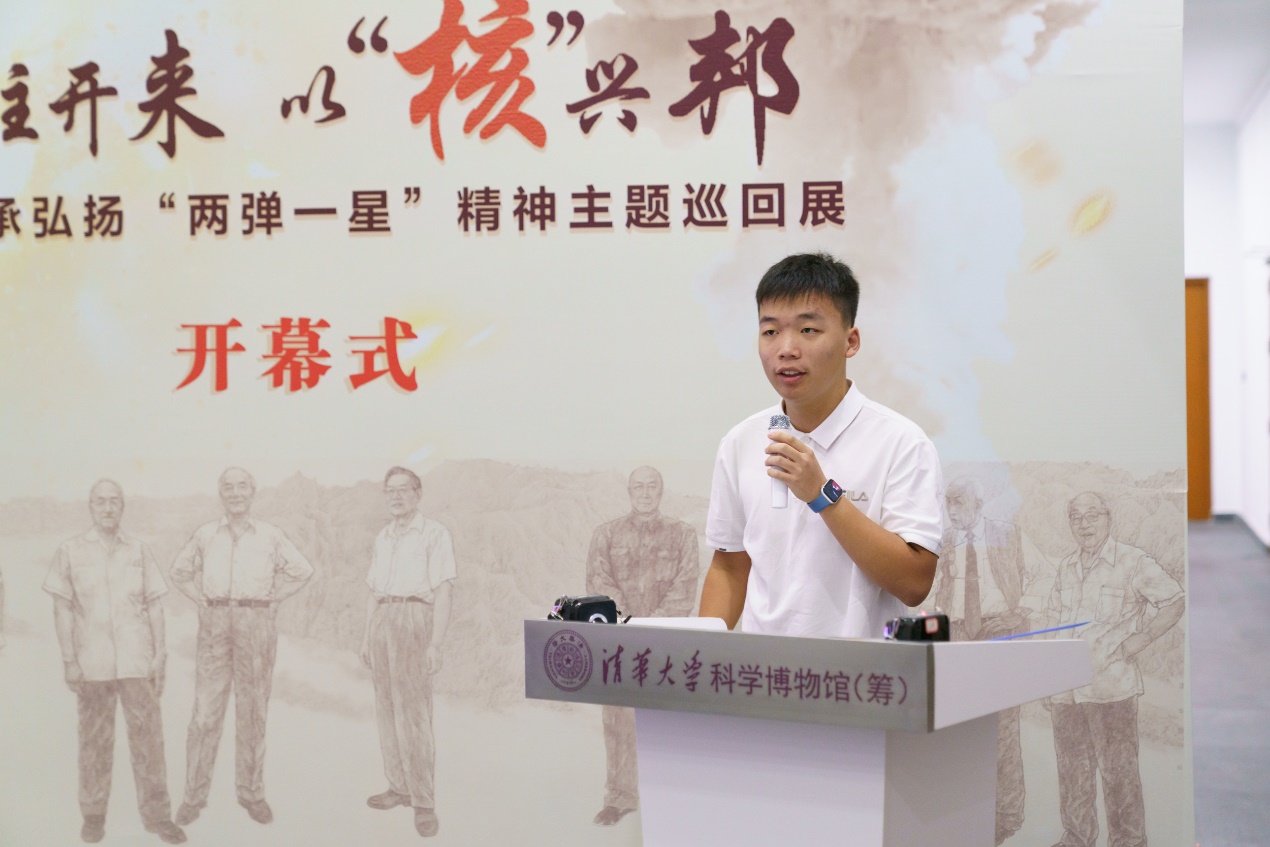 清华大学工程物理系党委副书记黄善仿回顾了工物系与“两弹一星”精神的紧密联系,希望清华学子能够通过此次展览深入学习“两弹一星”精神,并将其融入学习与科研中,为国家富强、民族复兴贡献力量。