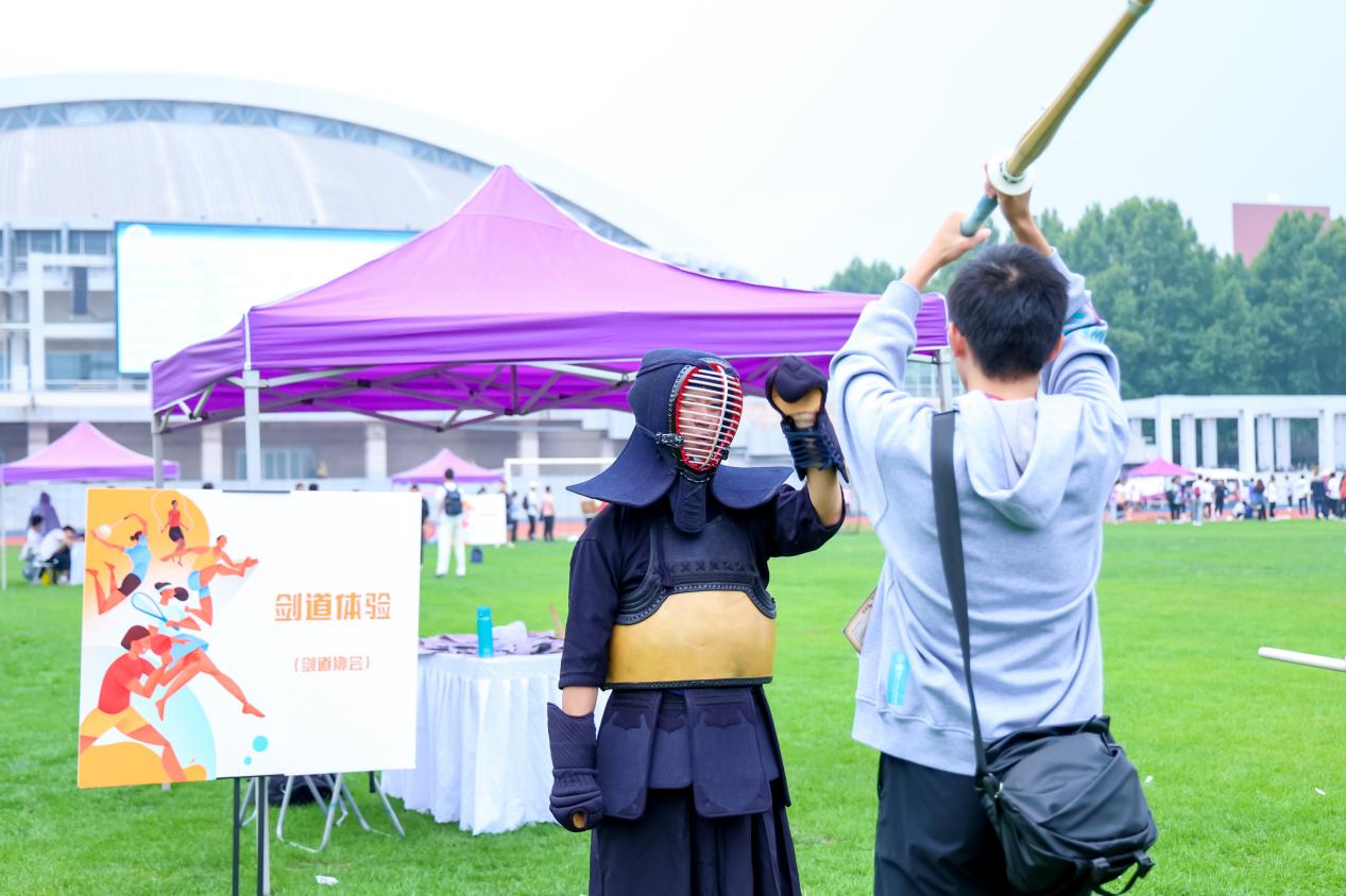 由校团委学生骨干、体育类社团协会成员、阳光体育助教组织的射箭、剑道、飞盘九宫格等体验项目和投篮、桌上冰壶、摸石过河等趣味竞技项目,吸引了新生踊跃参与、集章打卡,大家在欢声笑语中展现靓丽风采,在取景框中定格属于班团集体的独特故事。