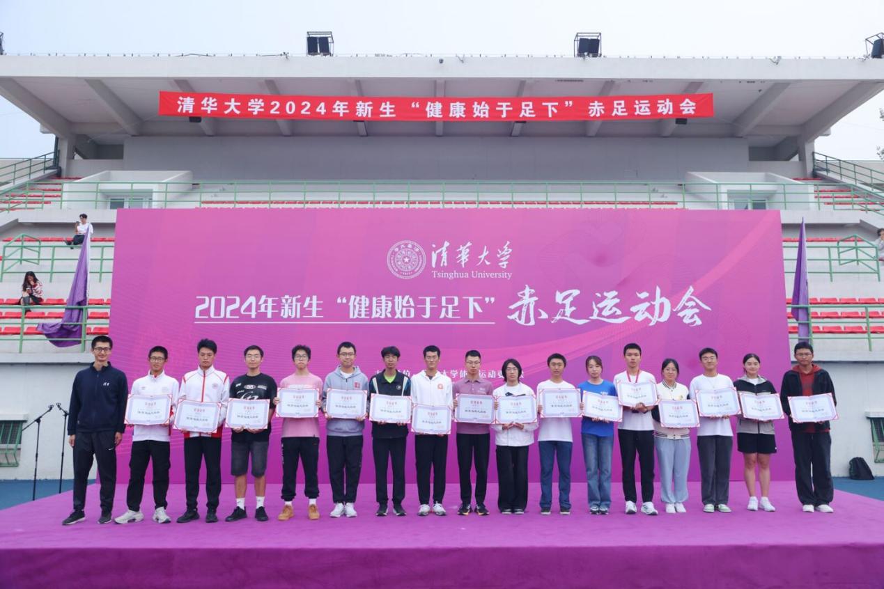 清华新闻网9月30日电(学生记者 常潇予 摄影 霍元东 罗长盛 赵青松)9月28日,清华大学2024级新生“健康始于足下”赤足运动会在东大操场举行。校党委副书记过勇出席开幕式和闭幕式,并为获奖班级颁奖。未央书院微软工41班、自动化系自42班、车辆学院兵4班分获冠军、亚军、季军,自动化系等16个院系获得“体育道德风尚奖”。