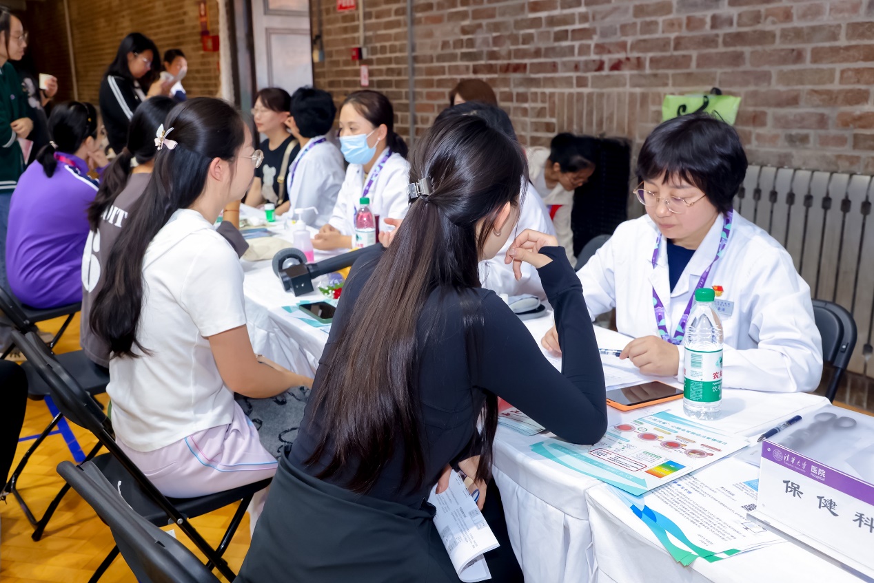 位于西大操场西侧的西体育馆内,校医院、清华大学第一附属医院、第二附属医院及清华大学长庚医院共同开展了健康咨询及诊仪体验服务活动,吸引了不少教职工参与。