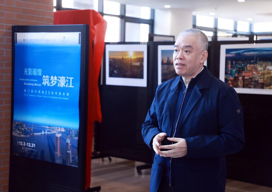 王岩回顾了清华大学与澳门的深厚渊源,以及在澳门回归祖国和后续发展建设中在教育、科技、公共基础设施、法治安全等领域助力澳门发展的贡献。他表示,此次摄影巡展通过影像方式展示澳门的蓬勃发展与独特人文风貌,能够让广大师生更加直观地感受澳门回国祖国25年以来的历史变迁以及“一国两制”在澳门的成功实践。