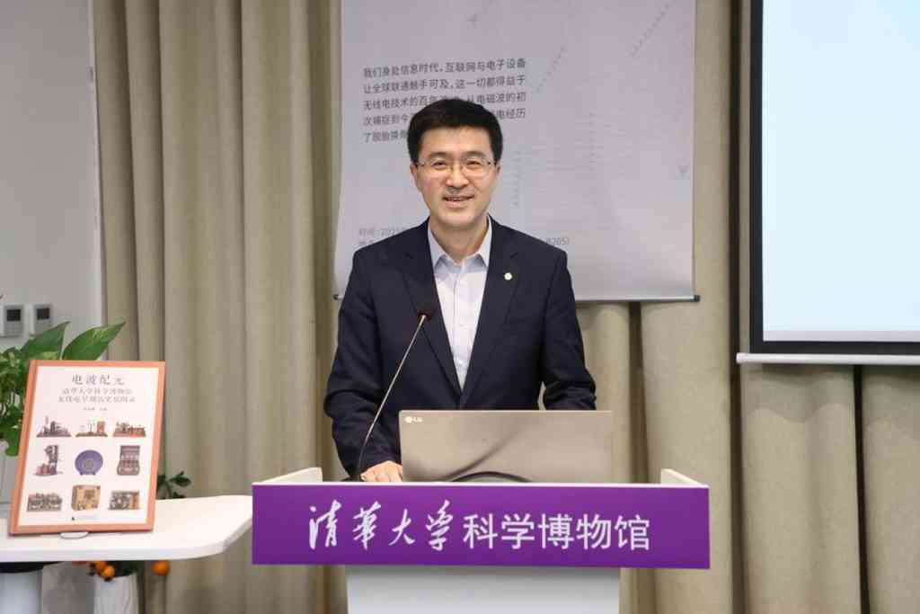 清华大学电子工程系党委书记沈渊代表展览协办方致辞,介绍了电子工程系从无线电技术起家的历史渊源,以及该展览对培养学生的专业情怀和科研创新精神的积极作用。