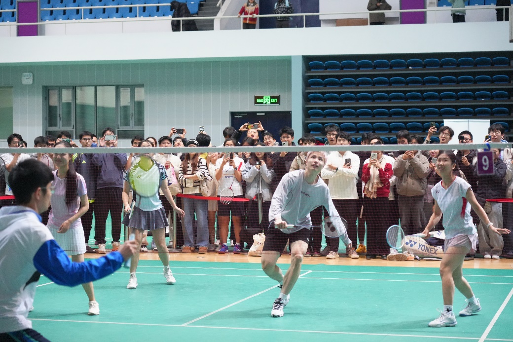 11月24日下午,2024年世界羽联年终总决赛男单冠军、2025年羽毛球世锦赛男单冠军石宇奇来到清华园,为同学们讲述冠军背后的成长故事,鼓励青年学子在科研、学业和人生遇到困难时,“先相信一切都是最好的安排 ,然后专注做好每一个细节”。在综合体育馆,石宇奇现场邀请同学参与羽毛球1v3和4v4趣味互动。