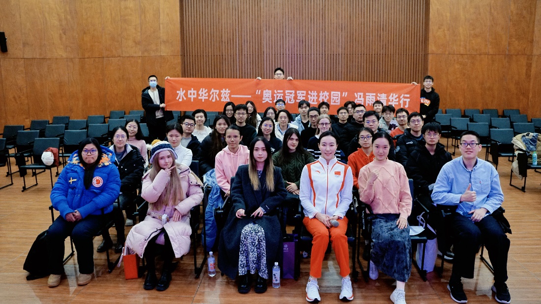 12月8日下午,巴黎奥运会中国体育代表团旗手、花样游泳集体技巧自选冠军冯雨与清华师生分享了花样游泳之路的初心与起点,讲述了花样游泳的训练日常和大赛细节,并鼓励同学们“只要不放弃,就一定能够超越自己,遇见更好的未来”。