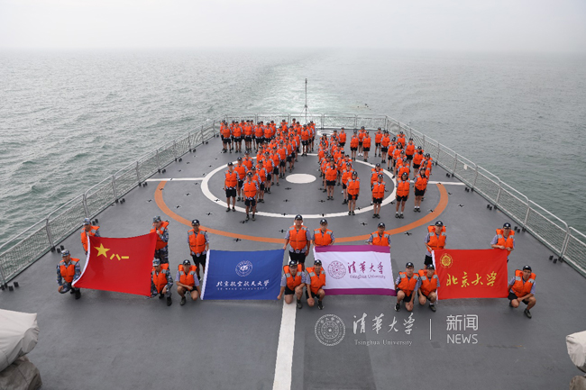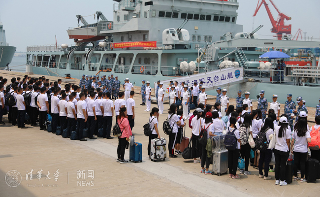 清华新闻网7月25日电 (通讯员 房雯)7月15-22日,清华师生代表一行55人奔赴青岛、威海、烟台、大连等地,参加了为期一周的“启航2019”航海实习活动。实习期间,清华师生及北大、北航学生代表与海军官兵同吃同住,分别参观了直升机、综合补给舰等海军先进装备,走进蔡一清纪念馆聆听英模事迹,参观沿途军港及纪念馆等地,以饱满的精神和优异的表现圆满顺利完成了此次航海实习之旅。自2014年开始,清华每年选拔约50名师生代表参加航海实习活动。