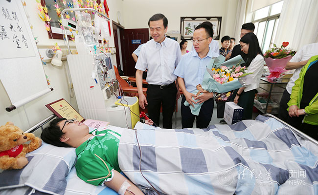 清华新闻网7月12日电 7月9日,清华大学土木系2016级本科生张强在中国人民解放军空军总医院顺利完成造血干细胞捐献采集,成为海淀区第71例造血干细胞捐献者,这是中华骨髓库引入清华大学以来出现的第二位HLA(Human Leukocyte Antigen,人类白细胞抗原)配型成功并顺利捐献造血干细胞的学生。北京市红十字会、海淀区和清华大学的领导到医院采集室看望、慰问了张强。