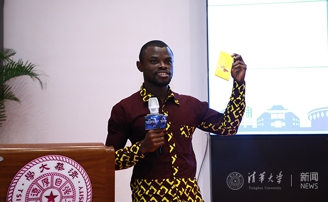 来自加纳的2019届硕士毕业生吉莫沙(Musa Frimpong)分享了来清华留学的经历。他在来之前对清华一无所知,后来被校园建筑、创新创业环境和学术气氛所吸引,逐渐爱上了清华。对于吉莫沙来说,清华大学为他提供了很多资源和锻炼机会。