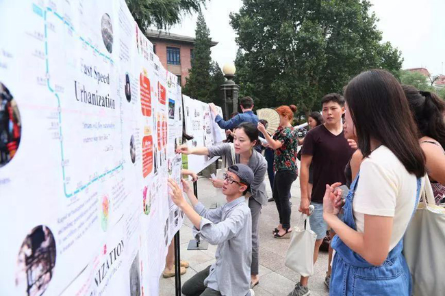 当天,“感知中国·清华印象”各组学生的学术成果也以海报形式在大礼堂前进行了集中展示(Expo)。精心制作的海报包含各组对各自方向学习内容深刻的认知和体会,引得众人纷纷驻足观看。