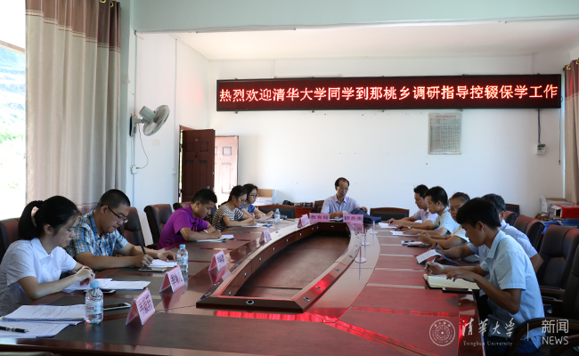“江村学者”广西实践支队由来自土木系、化工系、新闻学院、法学院等8个院系的8名成员组成,针对巴马瑶族自治州兼具国家级贫困县和高辍学率地区的特点,和县政府相关领导、各乡镇中心校校长、教师代表展开座谈。座谈中,各方就辍学劝返存在反复现象、当地青少年早婚早育影响入学、学校师资不足、旅游业带动力量挖掘空间较大等共性问题进行了深入讨论。