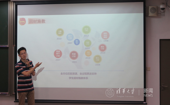 团课的第三部分是向新生介绍清华大学共青团工作,让新生在入校之际了解学校的各方面资源,如各类因材施教计划、社会实践、科创项目、志愿项目等等,帮助同学们更快地了解清华、融入清华。