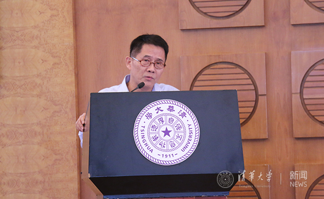 新雅书院2016级班主任、物理学系教授姜开利老师代表新雅全体教师和导师发言。他诙谐幽默地回忆了自己担任班主任的收获和喜悦。他认为,通识教育包括人文教育、艺术教育和科学教育,人文教育的目的是教会“爱”,艺术教育和科学教育的目的是教会“发现”和“创造”。姜老师借用闻一多先生的话“诗人的天赋是爱,爱他的祖国,爱他的人民”概括他任班主任的心得:“教师的天赋是爱,爱他的讲堂,爱他的学生”。