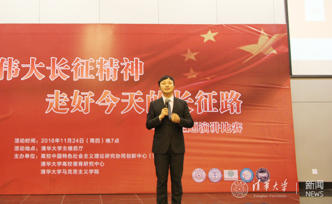 清华新闻网11月29日电 为纪念红军长征胜利80周年,弘扬伟大长征精神,激励和鼓舞广大青年学生在实现中华民族伟大复兴新的长征路上发愤图强,贡献青春力量,北京高校中国特色社会主义理论研究协同创新中心(清华大学)、清华大学高校德育研究中心、清华大学马克思主义学院于2016年11月24日在清华大学联合举办由清华大学、中国地质大学(北京)、中国青年政治学院、北京信息科技大学和燕山大学协同参与的“弘扬伟大长征精神,走好今天的长征路”主题演讲比赛。