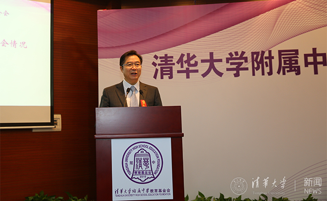 王殿军致欢迎辞。他说,清华附中在百年发展历程中培养了大量的杰出人才,“校友”是清华附中不可或缺的部分,形成了卓越的校友文化。清华附中教育基金会的成立,将进一步凝聚各界力量,用好这些力量,承担社会责任,发挥示范作用,不忘教育之魂,不舍教育之梦,为我国基础教育事业的发展做出更大贡献。