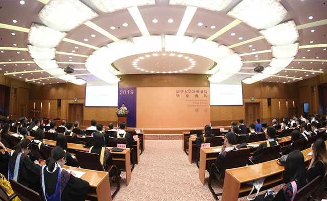 7月3日,清华大学新雅书院2019年毕业典礼在主楼接待厅举行,2015级新雅学生和部分家长,清华大学校长助理、副教务长彭刚老师,来自建筑学院、生命科学学院、法学院、车辆与运载学院、电子工程系、机械工程系、人文学院等院系的领导与老师,以及新雅书院院务会、教师代表等一百余人参加了典礼。在典礼上,彭刚老师做了题为“日新又新,志高格雅”的讲话,勉励同学们以新雅为起点,做一个志存高远、永怀“书卷气”的人。