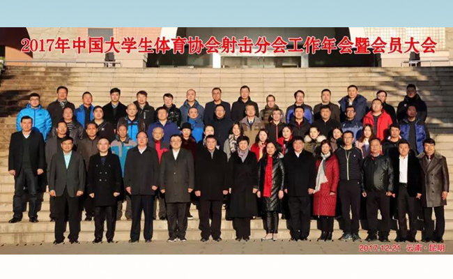 现在射击队的领队是副校长杨斌老师,这张就是在2017年,云南昆明大体协射击分会年会上, 杨斌副校长(前排左四)接棒陈旭书记(前排左六),当选主席,同时接任清华射击队领队时拍的合照。