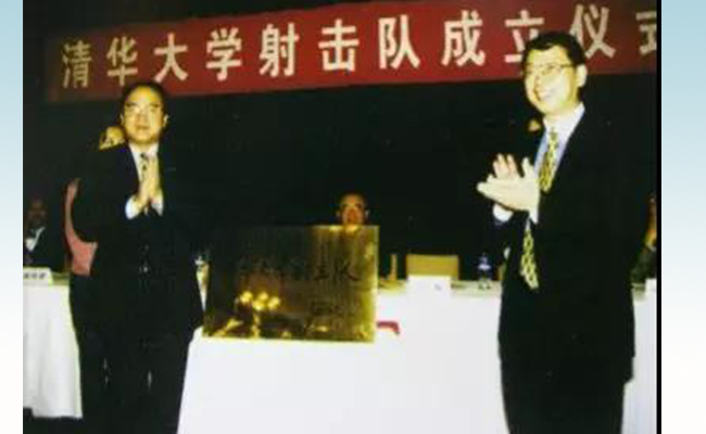 时任校党委副书记陈希与原国家体育总局副局长刘吉为清华大学射击队揭牌