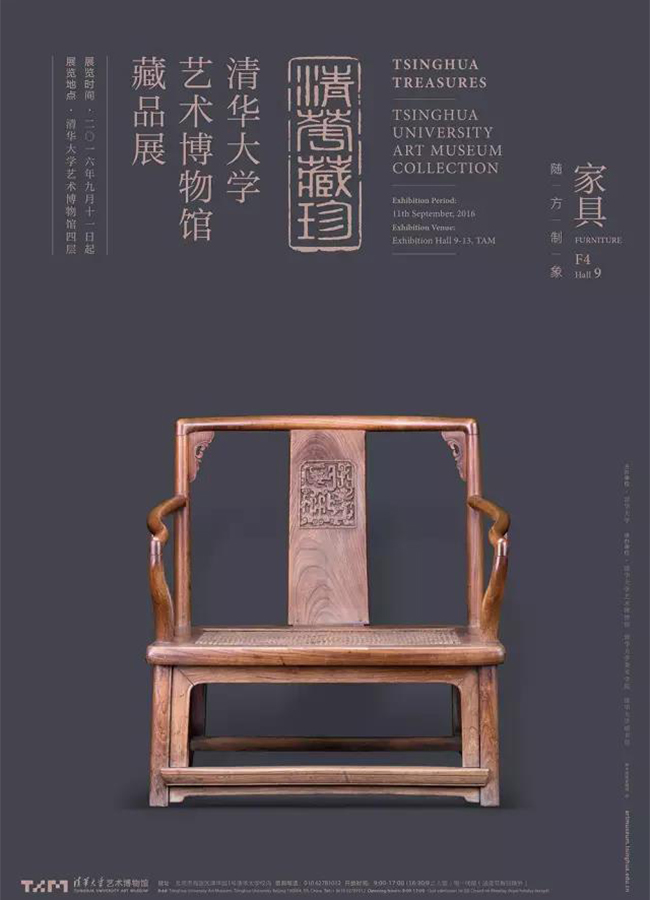 清华大学艺术博物馆收藏有家具一百四十余组件,以凳椅类、桌案类和柜架类为主,尚有少量橱柜类家具,时代自明至近现代。其中尤富盛名的是五十多件以黄花梨、紫檀等材质为主的明式家具,有七件收录于王世襄先生编著的《明式家具珍赏》。本次展览的家具藏品绝大多数来自于原中央工艺美术学院的旧藏,包含明代黄花梨四面齐琴桌、黄花梨矮翘头案、黄花梨圈椅等传世精品。虽篇幅有限,难窥全貌,但仍可看作是清华大学艺术博物馆众多珍品的一个缩影。