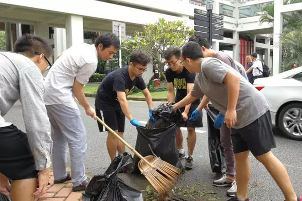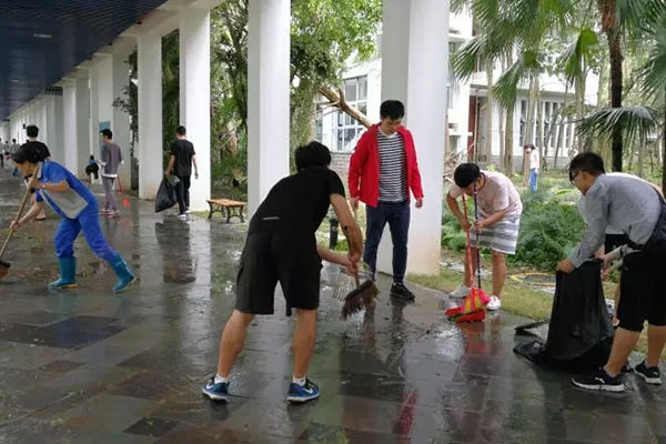 有位正在清扫树叶的学生志愿者说:“这次灾后的校园修复工作中,很多党员和班级同学都自愿过来参与。因为学校受灾非常严重,作为南国清华园的主人,我们有这份责任献上自己的力量。”