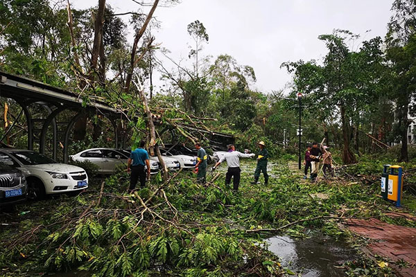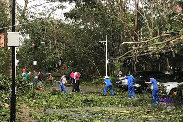 按照《清华大学深圳研究生院防洪防台风应急预案》,院后勤办统筹协调航天物业公司、绿化、保洁、校内施工单位等,对灾后修复工作进行了科学分工、具体实施。