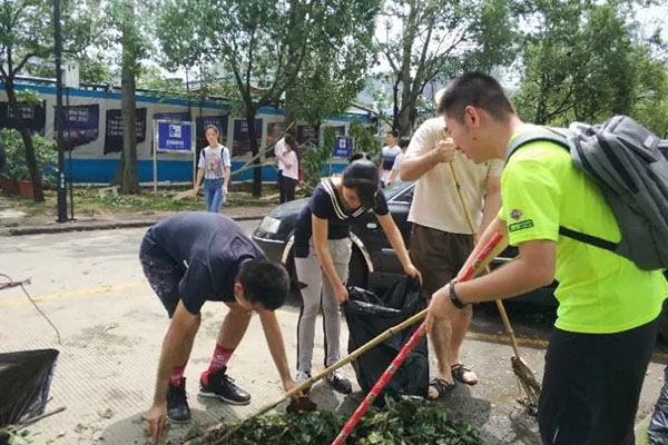 有同学说:“看到校园受损状况后,由党建带头,发动各学部党支书和班内党员加入志愿者团队,作为校园的主人,大家的责任感十分强烈。”