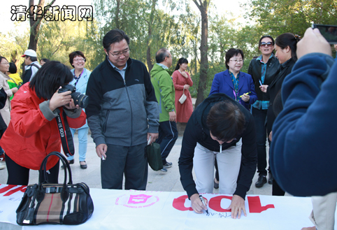 同时,为迎接清华大学附属中学百年校庆,清华附中也于当日下午在圆明园开展了“寄情清华附中,共迎百年华诞”教职工健步走迎百年校庆签名助力活动。陈旭,清华附中校长王殿军、党委书记方妍等与附中百余名教师参加了活动,并在附中百年校庆签名旗上留下自己对百年附中的寄语,助力清华附中百年校庆。
