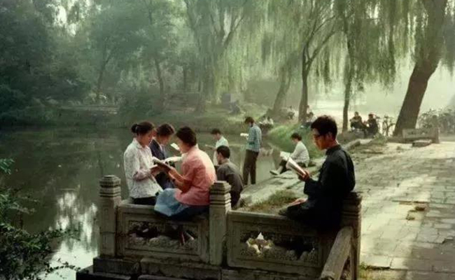 1980年代,学生在水木清华附近晨读