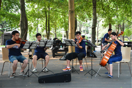 图为图为艺术团同学在珠海演奏《莫扎特长笛四重奏》。