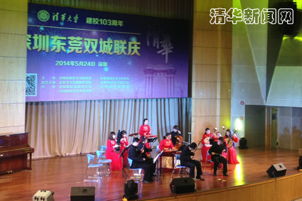 据悉,24日下午,艺术团还参与了 “清华大学建校103周年校庆深圳东莞双城联庆”文艺演出,学生艺术团民乐队、国标队、合唱队和曲艺队为观众献上了精彩的节目。