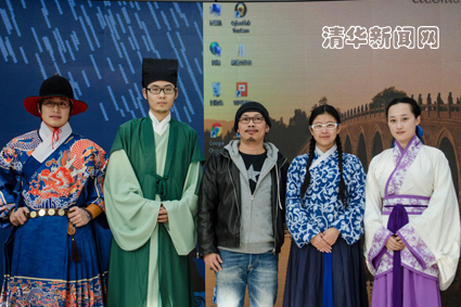 图为方文山与清华汉服社同学合影。