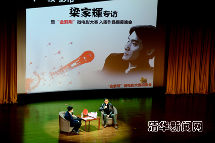 访谈环节结束后,晚会还进行了2013年清华大学“金紫荆”微电影大赛入围作品的揭幕仪式。梁家辉在全场观众的期待中,宣布了《新娘》、《清华,我们从这里出发》、《用行动说话》等19部清华学子原创作品入围本次大赛。