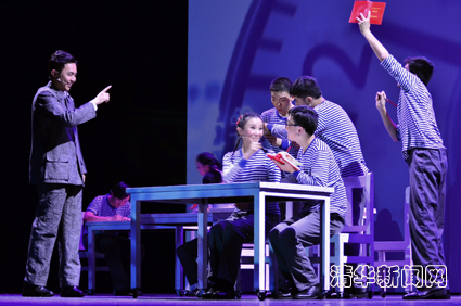 图为北京大学生戏剧节演出剧照:邓稼先带领同事们学习理论知识。卞正
