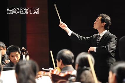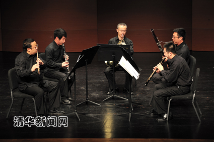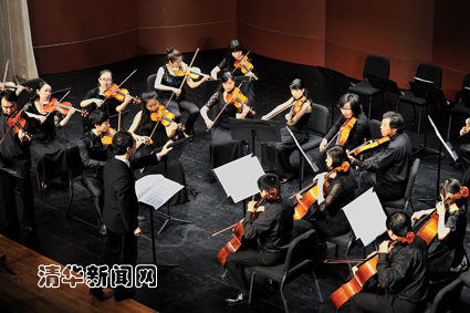 清华新闻网6月8日电 (记者 黄岩)6月7日晚,由中国音乐家协会主席、西安音乐学院学院院长赵季平教授担任艺术总监,西安音乐学院室内乐团演出的“艺术与科学的交汇”清华大学专场音乐会在蒙民伟音乐厅举行。校党委副书记韩景阳观看演出并在演出前致辞。西安音乐学院常务副院长、党委副书记孙卫国等专程赶来出席音乐会。