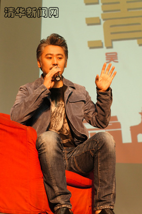 下午一点不到,等待入场的同学排成的长队成为清华大礼堂前一道亮丽的风景线。吴秀波在掌声中登台亮相。与《北京遇上西雅图》里的“大叔”形象不同,吴秀波身穿休闲牛仔服,依然不变的是灰白的头发和胡须。
