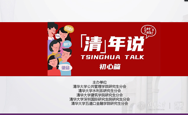 清华新闻网4月1日电 3月27日晚,由清华大学公共管理学院、水利系、建筑学院、深圳国际研究生院及五道口金融学院研究生分会共同主办,以“青年分享+青年对话”的方式开展的《“清”年说》栏目线上举行。栏目旨在发出清华声音,讲好清华故事,在疫情期间积极传播正能量,提供青年之间的互动交流平台。《“清”年说》第一期“初心篇”邀请5位来自基层公共服务部门的清华人分享关于“初心”的故事,共有来自21个院系的120余名同学线上参与了此次活动。