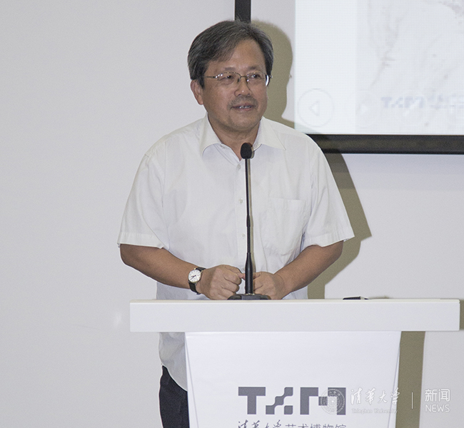 冯远围绕三个方面展开演讲。首先,他阐述了清华大学艺术博物馆的定位以及博物馆在当下时代的重要意义。清华大学艺术博物馆坚持以经典品格、学术价值、创新意识和人性化服务为追求,面向清华广大师生、面向广大观众、面向全世界开展文化传播交流。不仅陈列被专家学者所认可的、代表中华文化的经典艺术作品,还将关注、扶持、服务当代艺术创作的新成果,努力扩大中国文化在国内外的传播和影响。一手抓传统,一手抓当代,只有维系这两条线索,才能将博物馆内容不断更新,不断丰富,创造出更多与人类文明相关和当代创新有关的内容。
