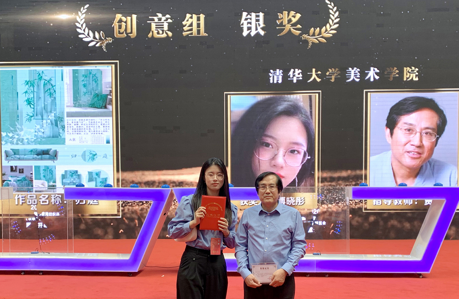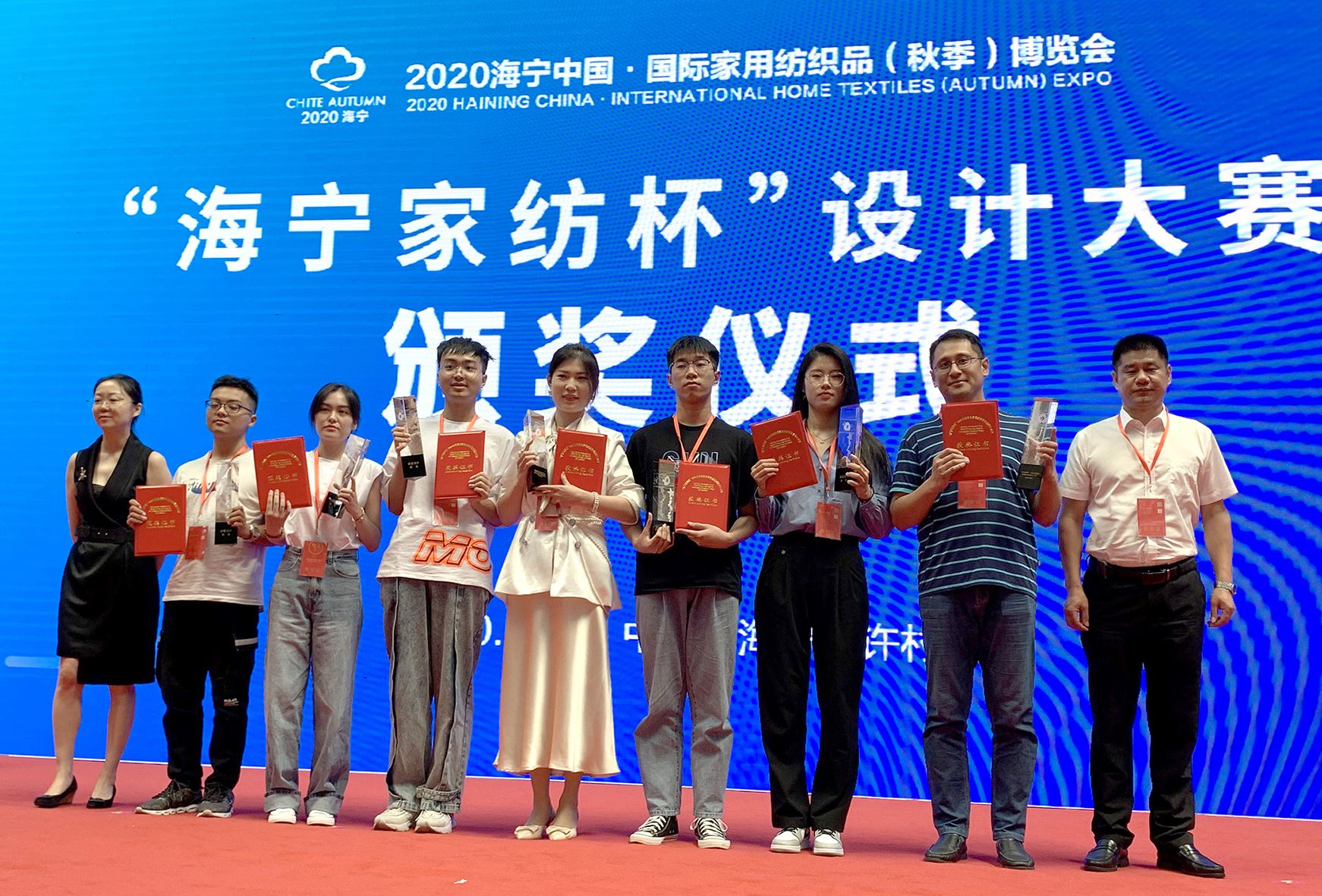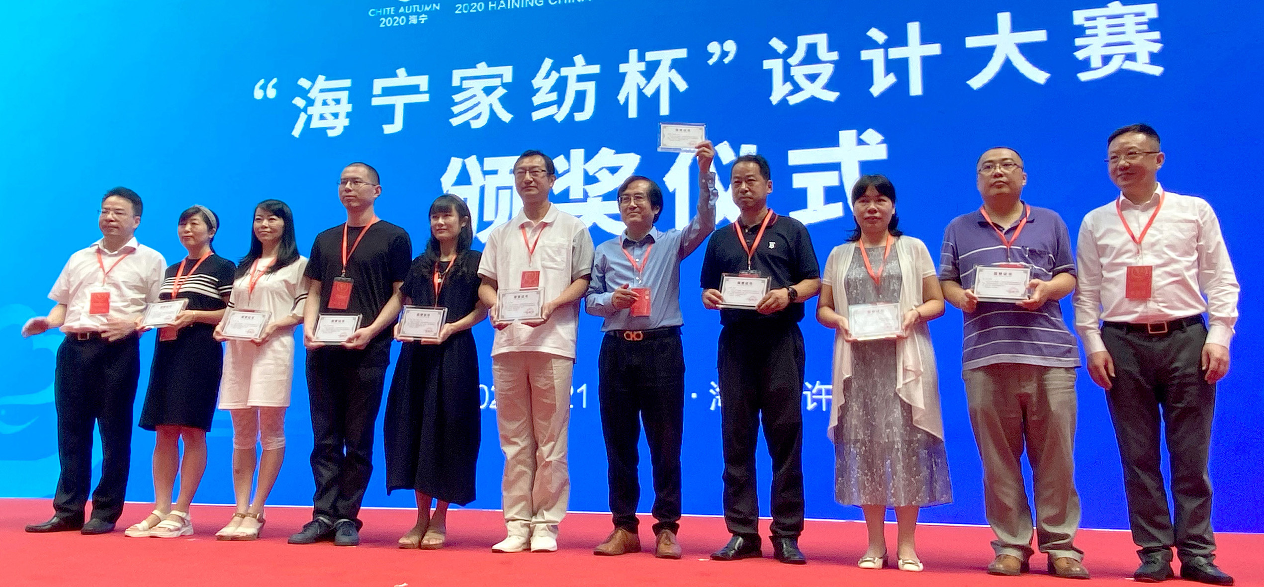 清华新闻网8月24日电 8月21日,“海宁家纺杯·2020中国国际家用纺织品创意设计大赛”获奖作品揭晓与颁奖典礼在浙江海宁许村举行。清华大学美术学院染织服装艺术设计系研究生辛颖的《流觞•曲水》、傅晓彤《归庭》作品分别获得金奖与银奖,研究生傅晓彤的《闲云雅叙》、研究生史冰心的《鹤览竹林》、本科生刘煜的《水信庭》作品获得优秀奖。贾京生教授、张树新副教授荣获“优秀指导教师”称号。