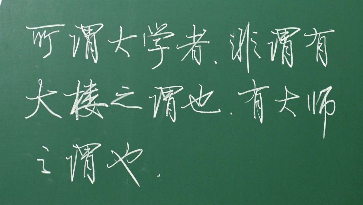 今年,比赛同样增设了加选内容板书,来自航院、数学系、核研院、生命学院、附小、学生社区服务中心、美术学院的7位年轻老师,在短短10分钟里不仅完成抽签规定内容的书写,还增加了徒手创意板书,设计内容包括力学里从平衡方程推导位移的控制方程、诗词、英文、隶书等,生动展现了各自的教学特色。