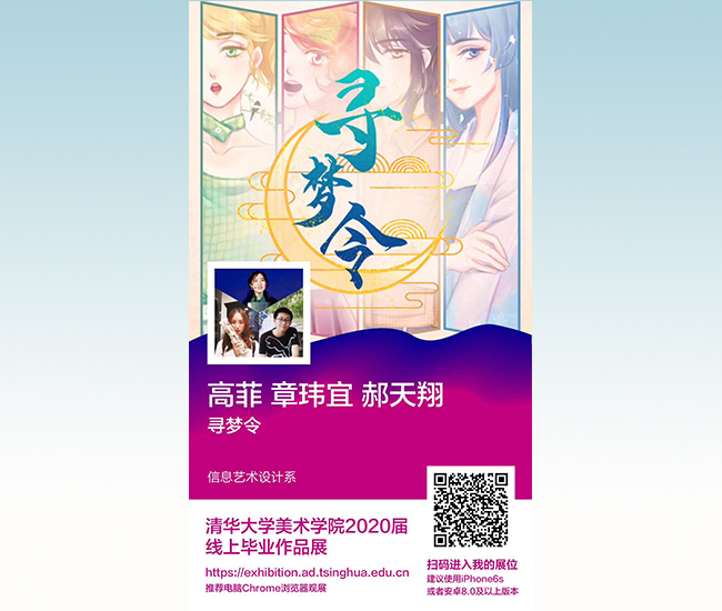 清华新闻网9月22日电 9月中旬,清华大学美术学院信息艺术设计系数字娱乐设计方向2020届毕业生高菲、郝天翔、郑雅文、章玮宜的毕业设计作品(指导教师:冼枫)《寻梦令》——基于二十四节气非物质文化遗产与休闲探秘游戏相结合的微信小游戏作品荣获北京市大学生动漫设计竞赛“互动作品”类一等奖。