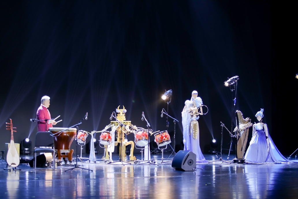 清华新闻网4月13日电 4月10日晚,“弦外之音-听见未来”创意音乐会在新清华学堂上演,国乐艺术家方锦龙先生与清华大学“墨甲”机器人乐队为现场1500余名观众带来一次“打破次元壁”的合作。清华大学艺术教育中心在新清华学堂启用九周年之际联合清华大学美术学院和清华大学未来实验室共同推出这台极富创新和实验精神的作品,让观众得以重新思考人与机器、科技与艺术、传统与未来的多重关系。