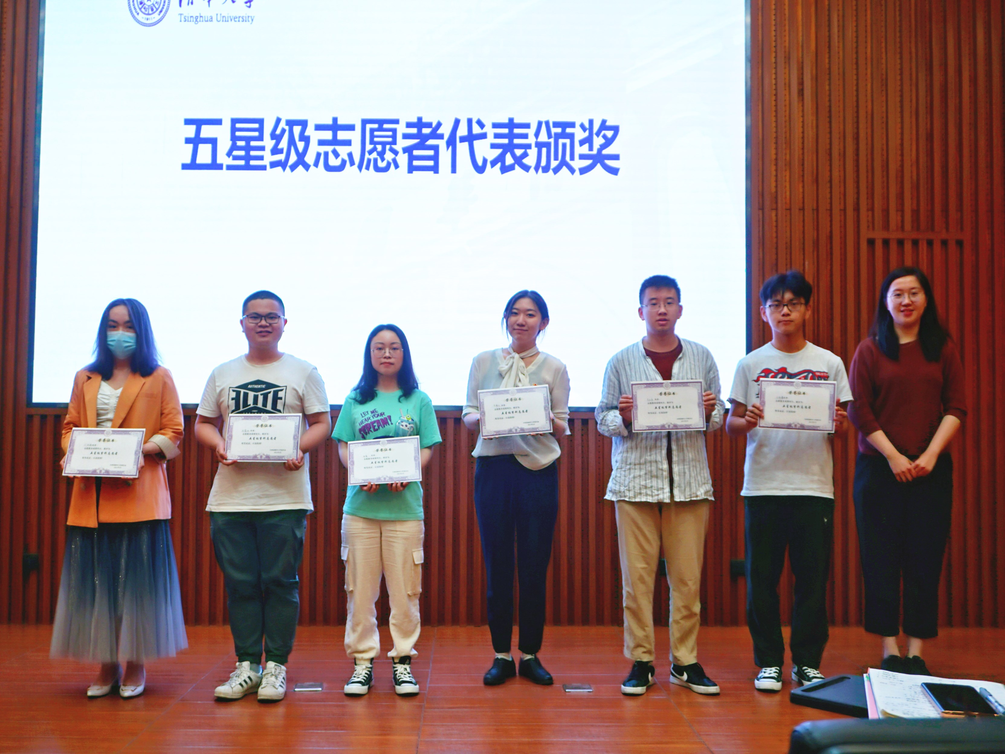 活动中,校团委副书记黄成为2021年清华大学五星级紫荆志愿者代表颁发了荣誉证书。五星级志愿者需满足在校期间志愿服务总时长超过200小时,且参加过五种以上不同志愿服务项目。