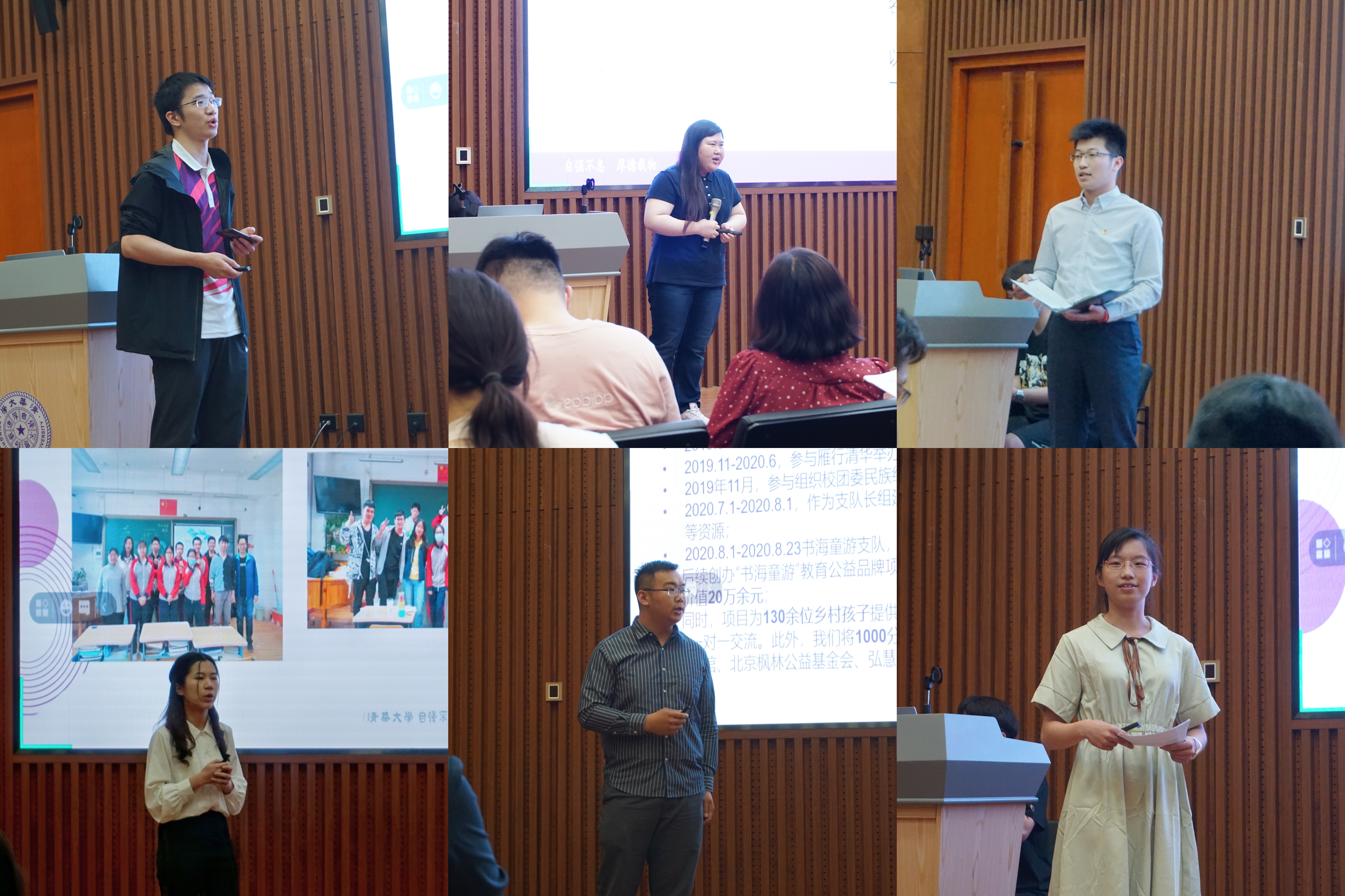 答辩会中,志愿者们分享了他们的志愿故事。物理系2017级本科生陈锦溢担任紫荆志愿者服务总队校园讲解队队长,他立足校园讲解,讲述清华故事,弘扬清华精神,做有温度、有深度的志愿。机械系2019级硕士研究生梁光顺参与志愿项目96项,志愿工时达1608.5小时,他说:“做一次志愿并不难,难的是一直做志愿,而志愿已经成为我的一种习惯。”精仪系2018级本科生李金峰积极参与线上教学、融合式教学等抗疫志愿服务,她几乎出现在了每一个需要志愿服务的岗位,曾获评2020年清华大学“年度人物”。数学系2019级博士研究生刘通曾任清华大学学习发展中心答疑坊队长,他深耕答疑,为同学答疑解难,并在疫情期间开创线上答疑,点对点为同学们提供精细化、个性化的答疑服务。人文学院2017级本科生覃靖璇曾发起“暖流”志愿项目,为远方留守儿童孩子带去温暖,陪孩子们去看更大的世界。