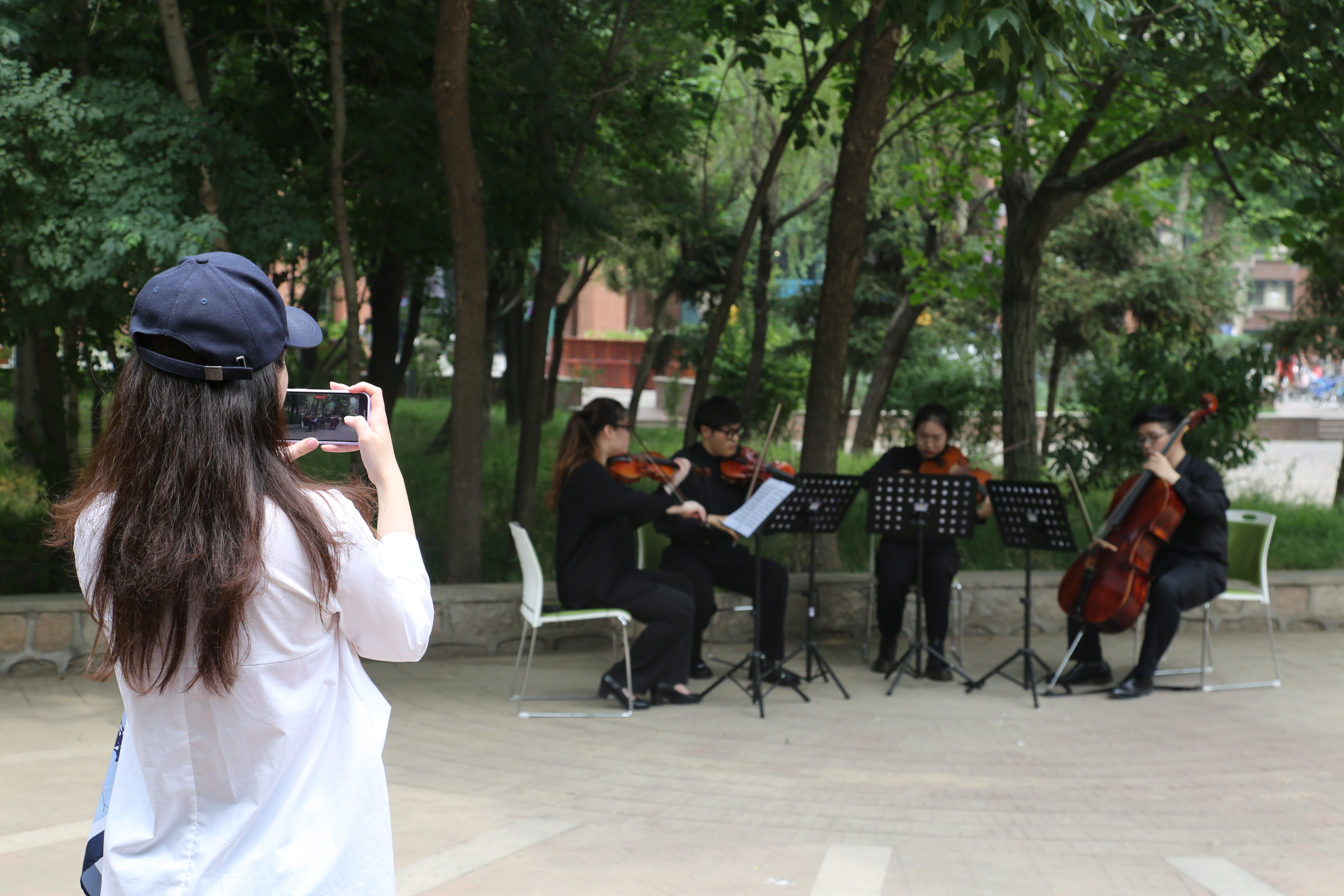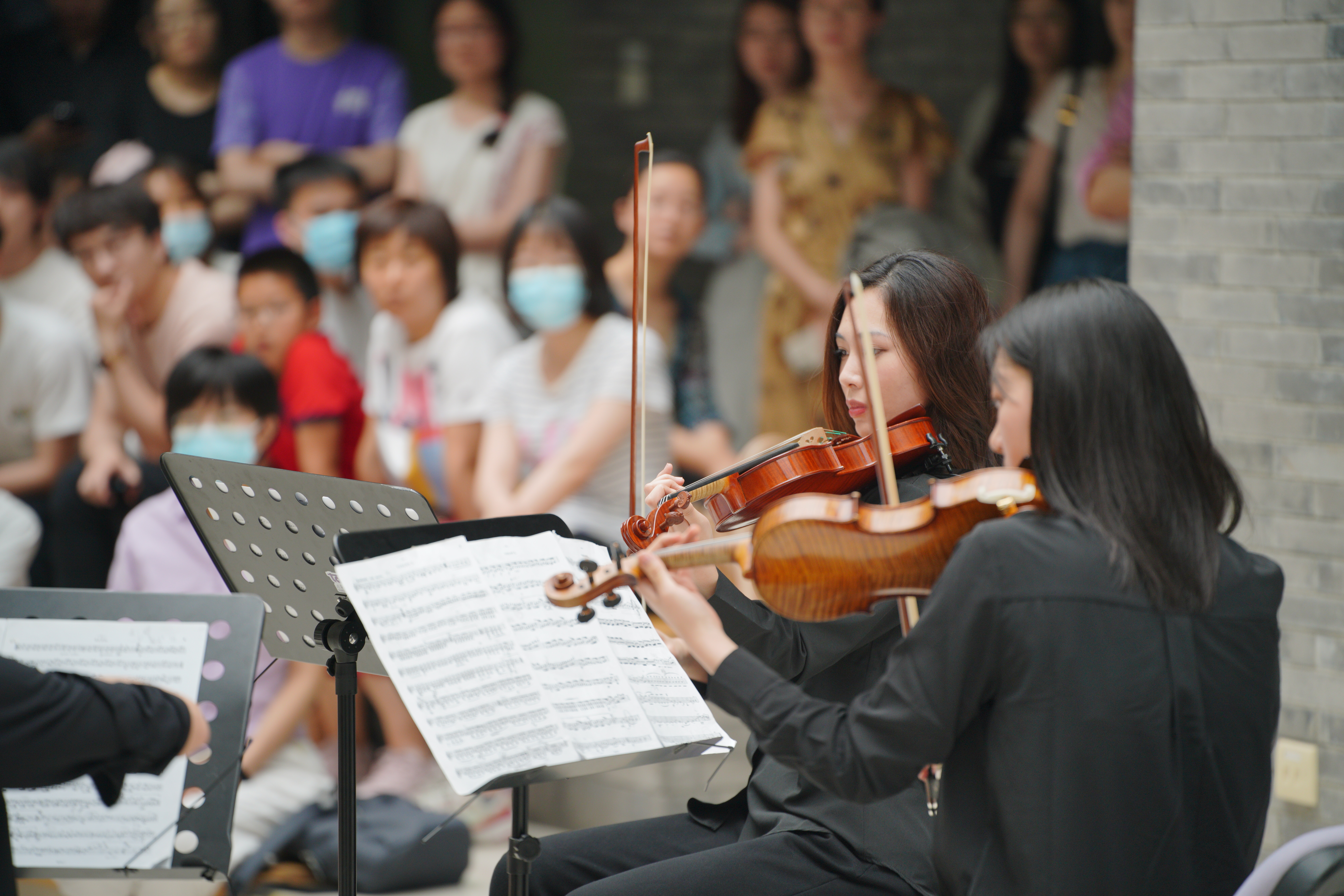 清华新闻网6月10日电 (学生通讯员 常佳豪 王琪)6月8日,“英华艺术时光”午间音乐沙龙在祖龙广场南侧和医学科学楼举办,来自中国音乐学院的12位同学为300余位清华师生带来了两场精彩纷呈的弦乐四重奏。本次活动由清华大学研究生会主办,艺术教育中心和“英华学者”项目提供支持。