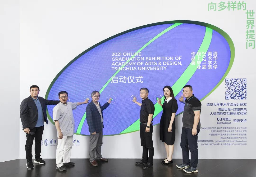 开幕式上,还举行了清华大学美术学院2021届线上毕业作品展启动仪式。鲁晓波、马赛、杨冬江、方永新,以及美术学院师生代表共同上台,宣布本届线上毕业作品展正式启动。