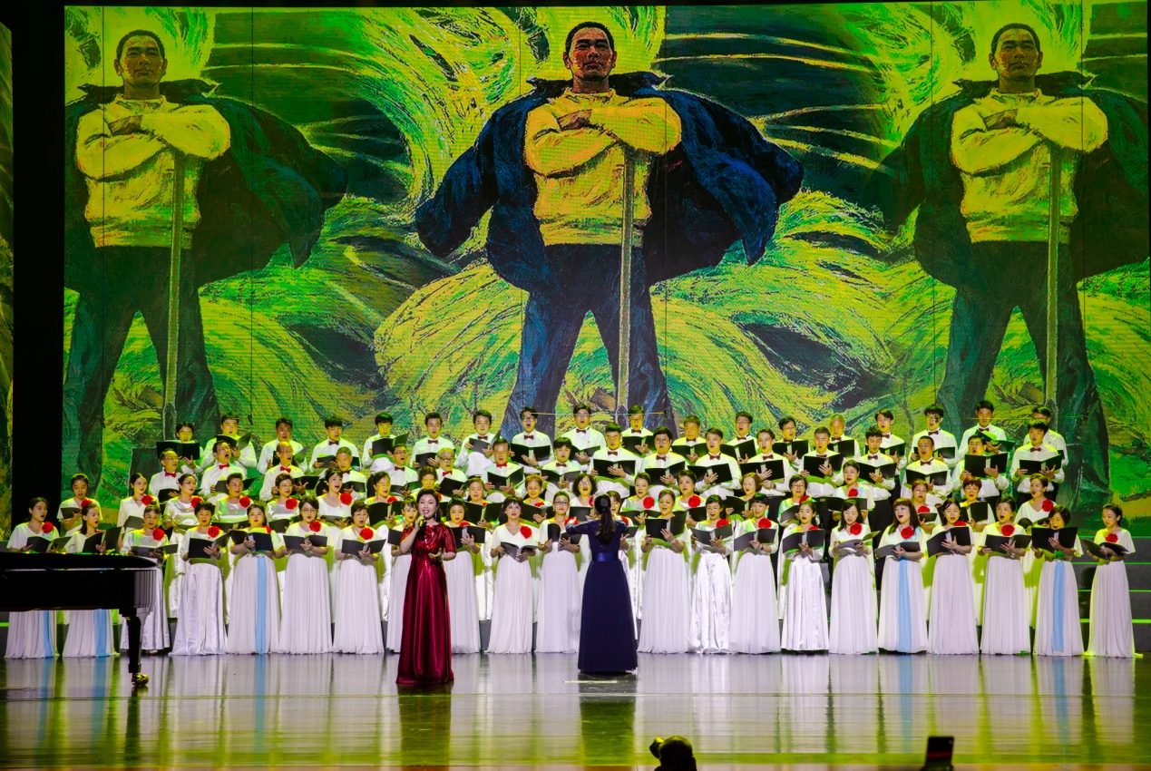 最后,台上台下共唱《没有共产党就没有新中国》,铿锵歌声将音乐会推向高潮,全场响起经久不息的掌声。
