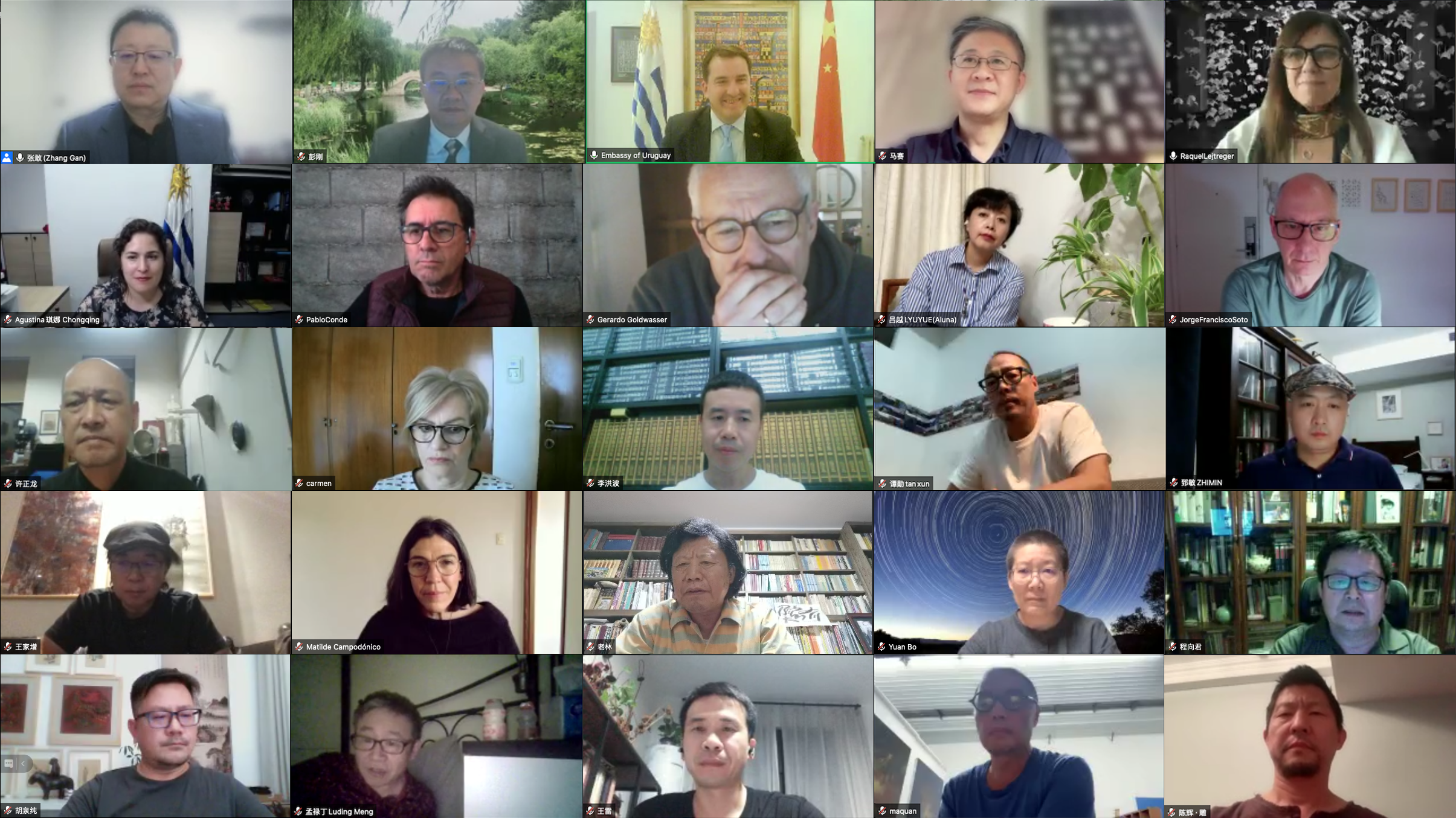 清华新闻网8月27日电 8月25日,时逢乌拉圭国庆日,由清华大学主办、美术学院当代艺术研究所承办、乌拉圭驻华总领事馆协办的“唯物思维”中国-乌拉圭当代材料艺术交流展(线上展览)在线开幕。乌拉圭驻华大使费尔南多·卢格里斯(Fernando Lugris),清华大学副校长彭刚,乌拉圭驻重庆总领事馆代理总领事阿古斯缇娜·卡萨瓦耶·博尼雅(Agustina Casavalle Bonilla),美术学院党委书记马赛,此次展览的乌拉圭方总策展人拉圭尔·勒杰尔格(Raquel Lejtreger),与两国策展团队成员、参展艺术家、特邀嘉宾等60余人出席了线上开幕式。开幕式由展览总策展人、美术学院当代艺术研究所所长张敢主持。