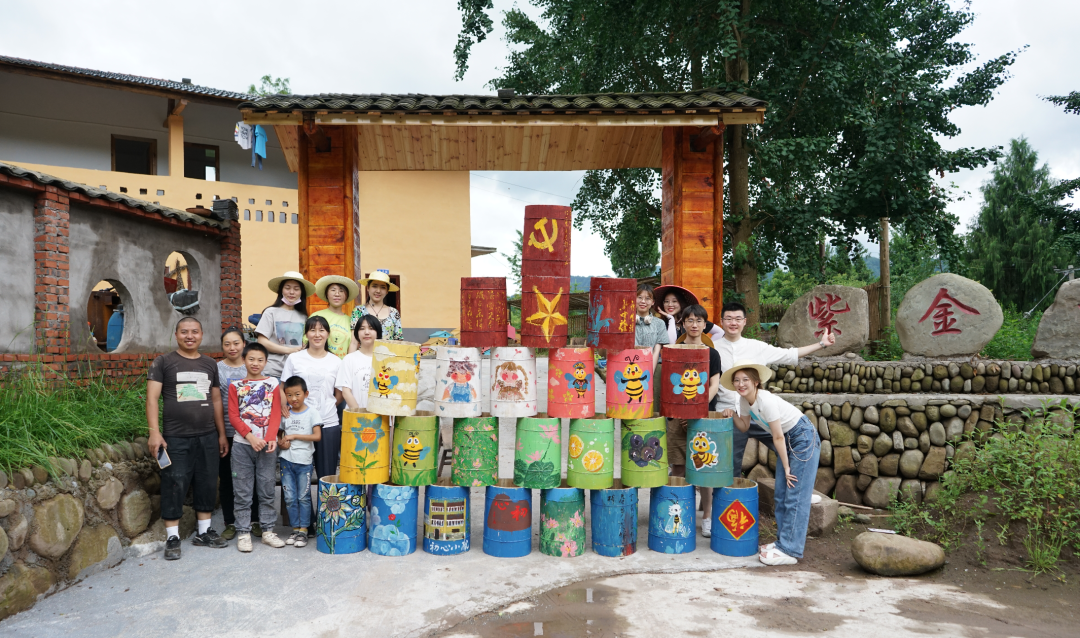在“两个一百年”奋斗目标历史交汇的关键节点,载入史册的脱贫攻坚战已然闭幕,乡村全面振兴的蓝图正在徐徐展开。美术学院美博20党支部、自动化系自硕20党支部赴重庆市中益乡开展实践,通过推进文化育人工程,落实红色文化创作实践基地建设,为“美丽乡村”的建设贡献青春力量。支部成员发挥专业优势,调研中益乡田园产业和文旅项目情况,根据当地农户养蜂产业现状,为传承70余代的中华蜂守蜂人设计文化蜂桶,为中益乡第三产业发展贡献清华智慧。